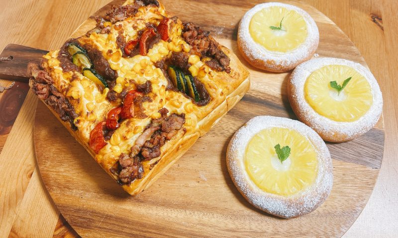 パインココは夏らしいココナッツ風味のパン生地にココナッツクリームとパイナップルをのせてます。