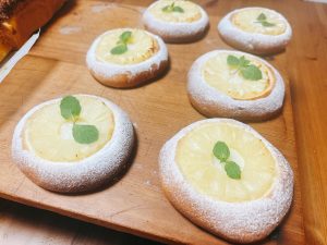パインココはココナッツの香りのミルククリームの上にパイナップルを一切れドンと乗せてます。