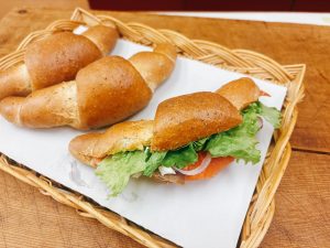 3個のうち1個はサーモンサンドにしてご試食です❣️