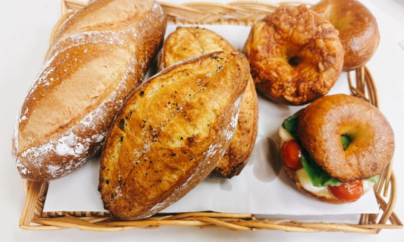 ベーグルはミニトマトとモッツァレラチーズをサンドしました。