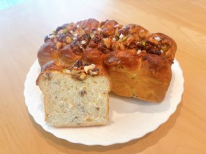 キャラメルナッツがたっぷりのった大型パン「ブリオッシュナンテール・ノア」