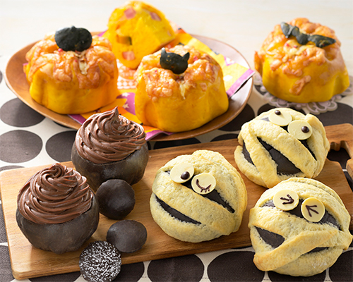 かぼちゃ入り生地にベーコンやチーズなどの具材をたっぷり詰めたボリューム満点のパン。