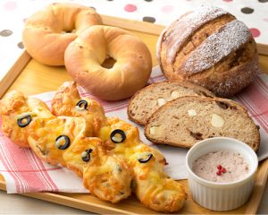 「赤ワインのいちじくカンパーニュ/オリーブのバトン/メープルナッツのリングパン」